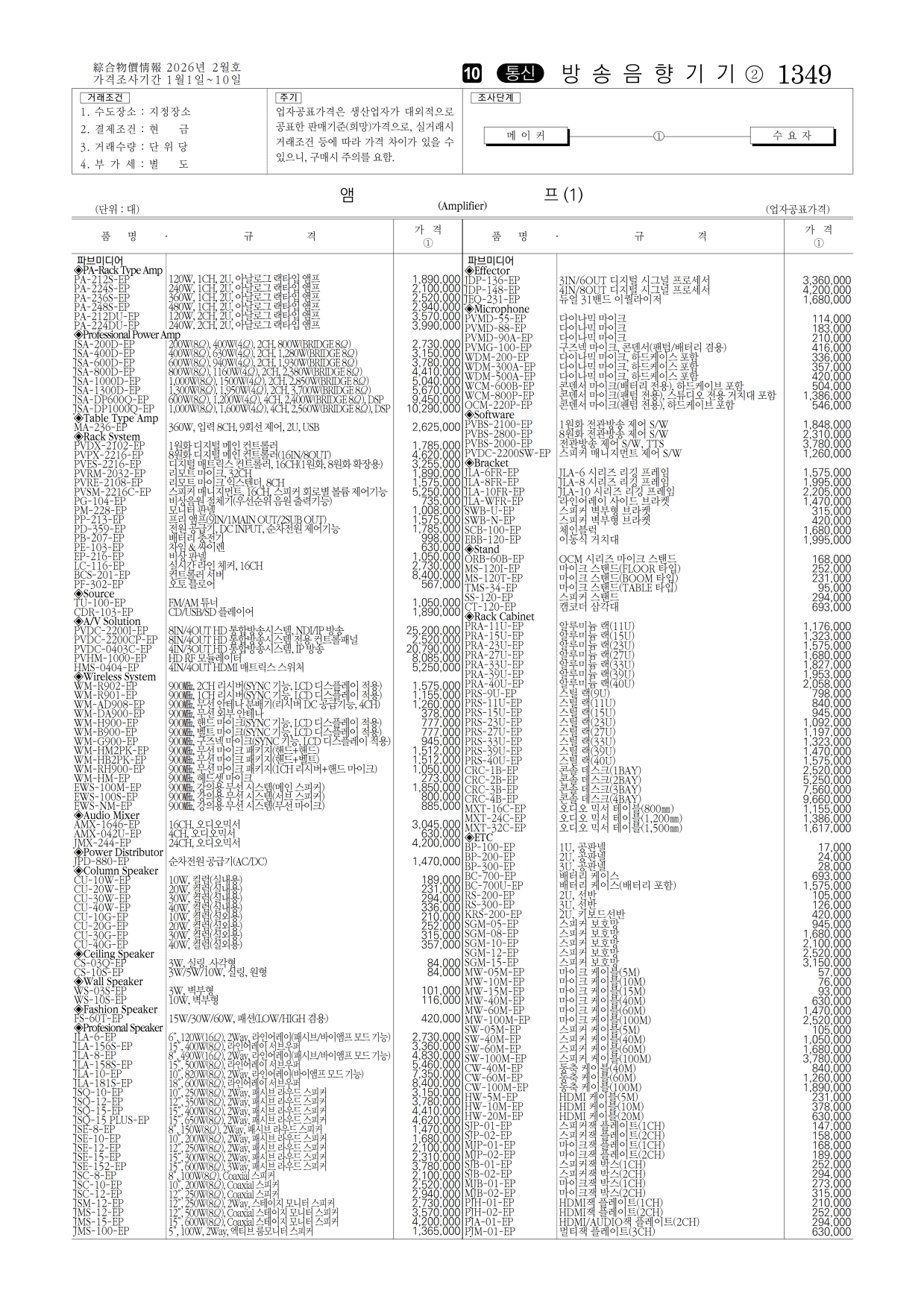 방송음향기기 물가정보 2026년 2월호